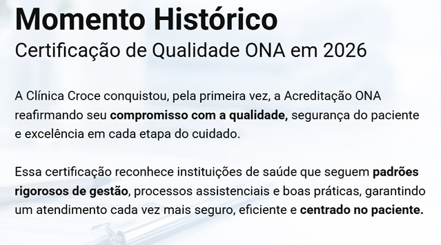 A Clínica Croce conquistou, pela primeira vez, a Acreditação ONA